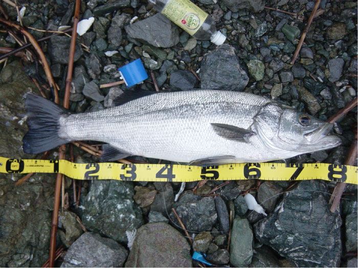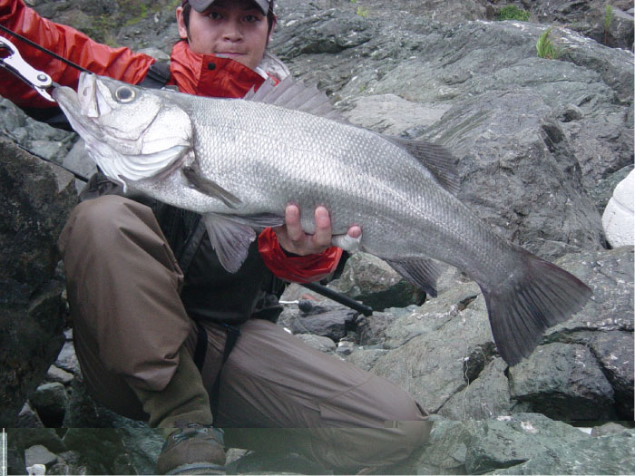 ホッとしたのも束の間、次の波に岩の間から向こう側へ持っていかれ平鱸の重量が一気に掛かりプツン。