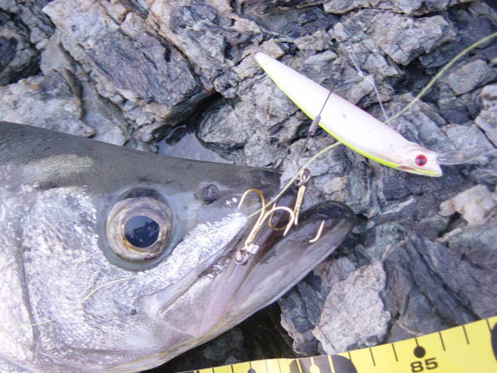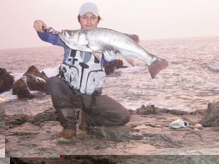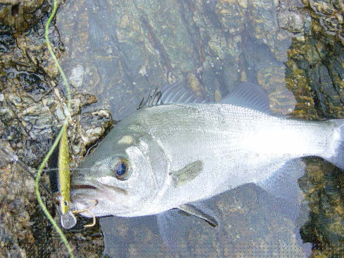 全くエラ洗いを見せないのでまさか黒鯛?と思うような引きで上がってきたのは50cmクラスのヒラスズキでした