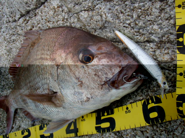 完全な地磯からの真鯛ランディングはボーグルアー世界記録です。
