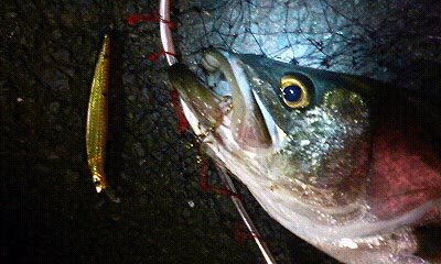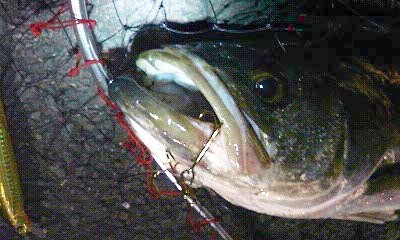 よたよた泳ぎながら、ラインテンションが少し張り、ルアーの向きがこちらに向いた瞬間!