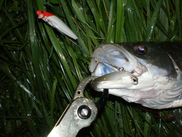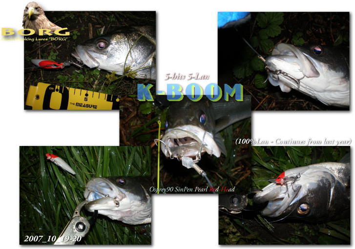 いつもお世話になっております。 アワセについて・・・ 文書にするのって、とても難しいですネ〜(笑 私の場合はシャローエリア、 又は水面下スレスレで食わせるスタイルの釣りしか出来ないので、参考になるかどうか解りませんが、 自分なりに感じているアワセについて書いてみました。 まず、場所によってフッキングポイントが違う事に気付きました。 @:スローリトリーブで水面直下を引く場合 深場からのかけ上がり、又は流れの緩いディープエリアのTOPでHitした場合は、真下からのバイトが多いので1文字クラッチ?が多い。 Aドシャローの場合・流れの中でルアーを引いている場合 サーフやシャローエリア、流れの速い場所では追尾後のバイトが多いのでリアフック主体のクラッチが多い。 @の場合は「ビシッ」とアワセずに、俗に言う「スィープ」なアワセをしています。 ロッドのTOPがシッカリ入ってから横方向にロッドを振り、バットのパワーでフックを乗せる(貫通させる)ような感じです。(メバリングのアワセに似てるかな?) Aの場合は比較的大きく上方向にロッドを振り上げてアワセをしています。 追尾してテールフックへのバイトが多いと感じているので、わざとインパクトアンカーを外してやるような感じでしょうか。 後はロッドを立てたままエラ洗いを誘発し、2次的なクラッチフッキングをさせています。 また、インパクトアンカーが外れていない場合でも、エラ洗いさせた時点で大概は外れるようです。 私の場合は何れも電撃フッキングとかビシッと力強くアワセるスタイルではありません。 瞬間的な強いアワセでフックを貫通させてフッキングホールを広げるよりも、ボーグルアーの特性であるフックユニットの構造上、挟み込むようなクラッチ優先のフッキングをさせる事が肝だと考えています。 また、追いアワセに付いては、薄皮1枚や関節の縁にクラッチしたフックを自ら外してしまうように感じています。 その理由から追い合わせも必要ないように思います。 以上、簡単ではありますが、解っているようで解っていない私的アワセ方について書いてみました。 BFTの皆さんに「使い方が違う」と笑われるかも知れませんが、何かの参考になれば幸いです。 by k-boom |