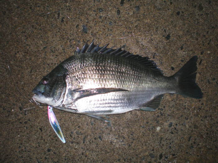 前回のシーバス、そしてブラッキー(黒鯛)と連続のシン・ペンヒットでした。