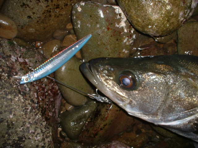残念ですがショアのシーバスタックルしかもライトなものを使ってますので突然の奇襲に対処できませんでした(^_^;)