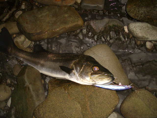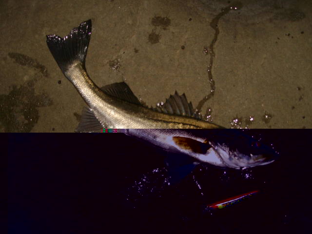 海草の切れ間を縫って暗いうちに4本のスズキをキャッチすることができたので