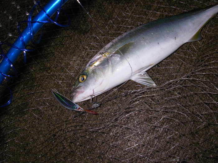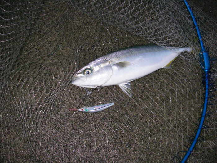 帰途、別な位置で地元のアングラーさんが「ようやくナブラが出ました」とイナダ一尾を取り込んでいました。