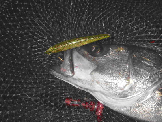 暫らくキャストするとコツンとアタリがあったので、遠くに置きっ放しのランディングネットを足元に持ってきて再開した直後でした。