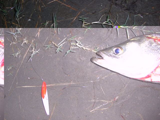 やや時間をかけランディングし、測ると65cm程度でしたが、腹がでっぷりとした重さのあるシーバスでした。