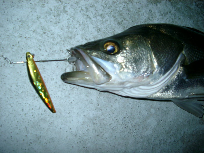 そして1投目、表層を引いているとシーバスがヒット!