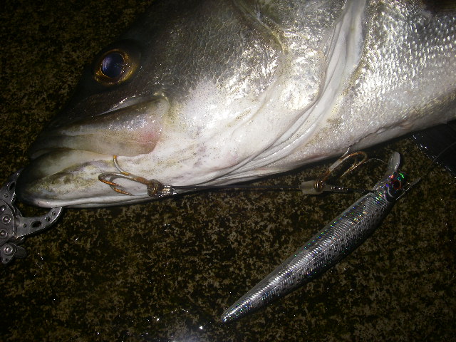 一番大きいサラシの中へキャスト、少し早めにリトリーブしていると、根掛りのような食い込みが。