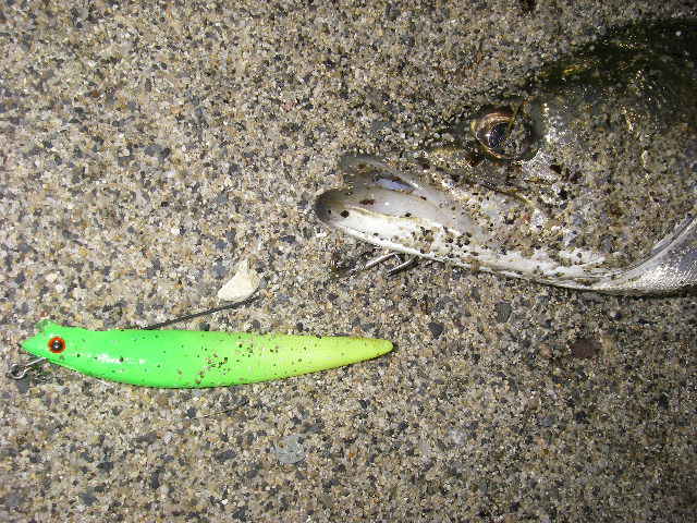 スレ掛りしたシーバスの泳がせ状態だな〜なんて近くまで引き寄せると