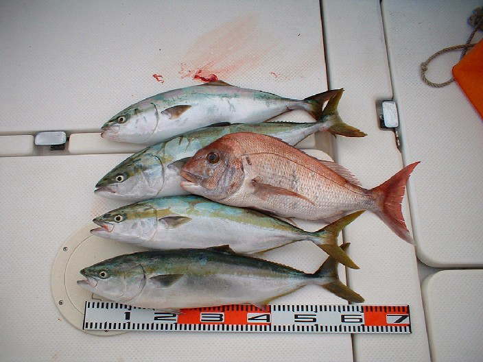 兄は良型の真鯛をゲット、私の不慣れなジギングではアタリすら取れず