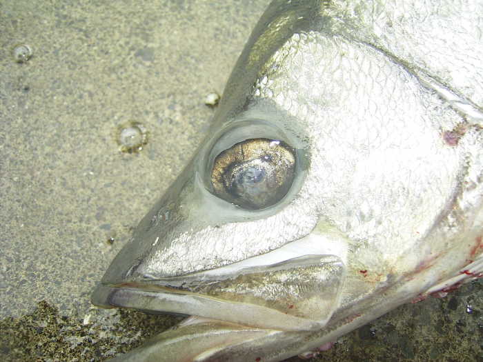 74cmは少し眼球がおかしいのですが、ルアーにアタックして来るところを見るとベイトを捕食出来て居るのでしょうね。