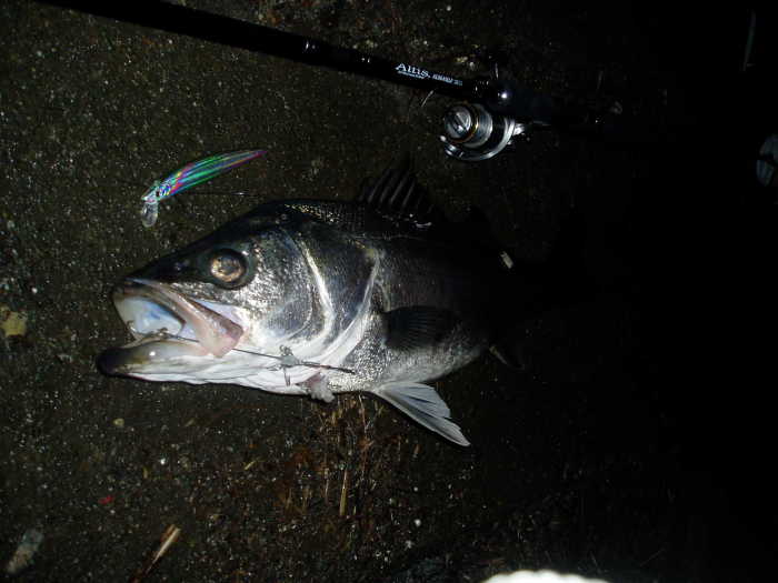 このシーバスは低水温の今時には、似合わず非常に良く引く!