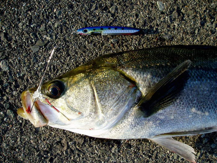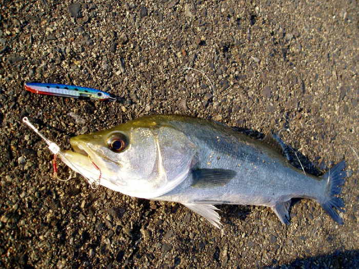 今日のシーバスはとくに大きくは有りませんが、この50pから60p(大阪港湾のアベレージ)が一番バレ易いサイズだと思います。