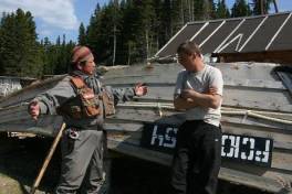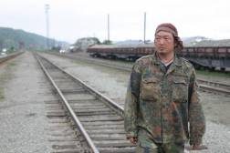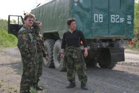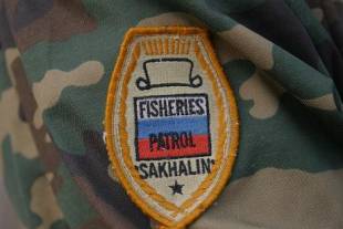 ポペジノ(古屯)で北サハリンの川及び魚の監視をしている役人?