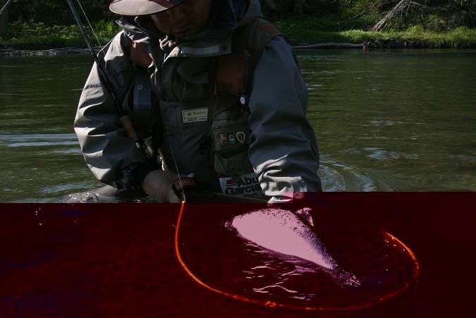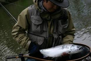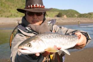 日本の同サイズのサクラマスより断然重量があるのだ。やっとの本命に心が躍る・・・。