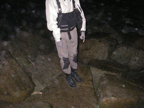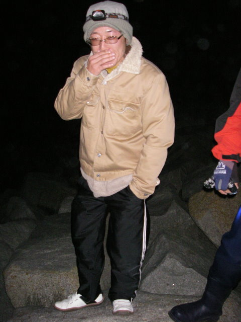 真っ暗な西磯で一瞬光ったフラッシュのすーさん