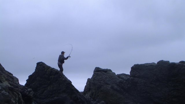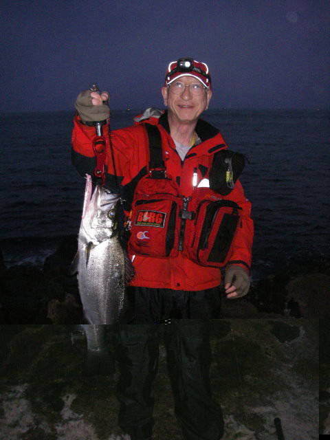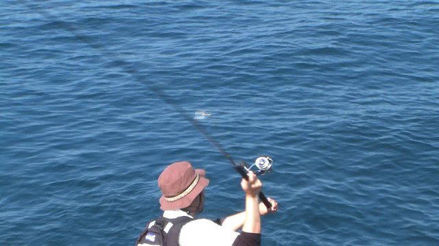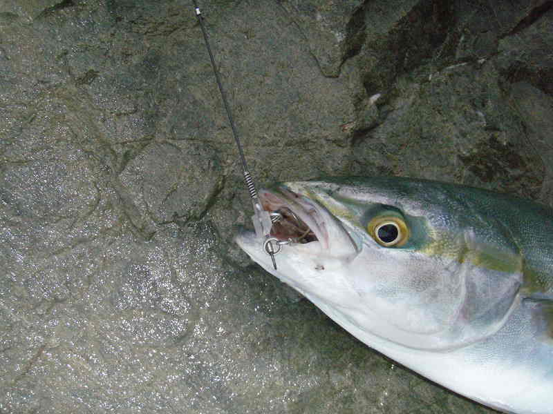 先日ブリが出たという堤防でリードセブンのポッパーリング