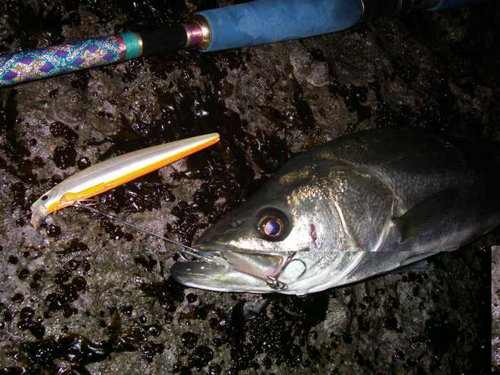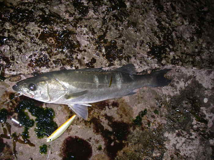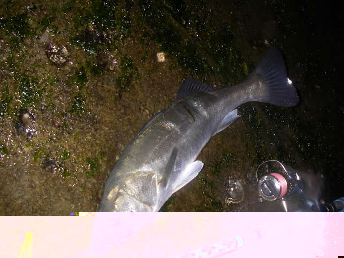 まだ潮位が低く足下には岩が顔を出している。なかなか粘り強く弱りませんでした。
