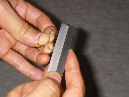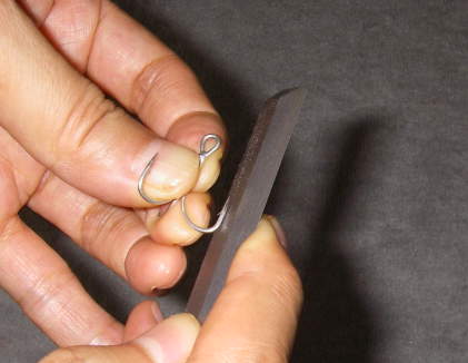 なるべくフックの鋼鉄線の延長線を感じながら全ての研ぎ面が一点で集結するようにイメージしてください。