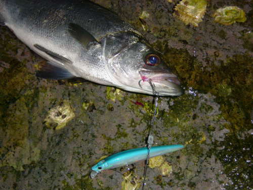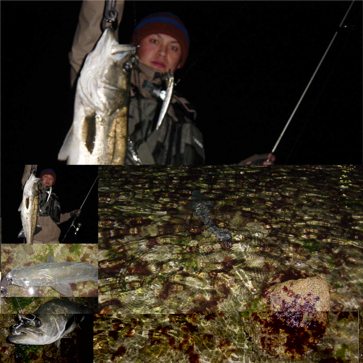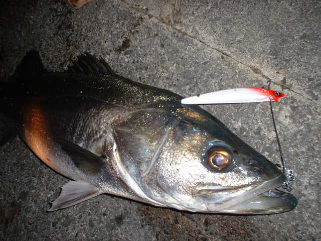 ![]() Top page Report by ArakiTomokazu(BorgFieldTester) 2006.1.29 お世話になってます。荒木です。マル釣れました。50cm位と73cmです。 ヒットルアーはシャフトIron黒銀です。 (ローリング系ウォブで泳ぐアクア・シャフトでは後ろからの吸い込み、くわえ込みが多い。このヒットはテイルから吸おうとしたターゲットにテイルフックがスナッグ。引き合いで離脱したユニット上を落下し魚体に接近したフロントフックが2次セットされクラッチフッキングがロックオンした、・・・と考えられる。→逆クラッチフッキング) ![]() 1月14日Borg-man 柴山さん アクア・シャフト(アイアン)で淡路での初ランディング(ダブルヒット、ダブルラン) 撮影BFT櫻井選手 名古屋から通い続けた成果!詳細は柴山氏ブログで→ 1月12日 BFT加地選手 Falcon128 SB/Iron ![]() 3時間ほど吉野川で釣りましたがアタリはこの1尾だけでした。その後鳴門に移動し、時期早々ながらメバルの様子見してみました。14cm〜18cmを16尾 1尾だけ26cmが釣れました。おまけに40〜50前後のミズセが7、8匹・・・。ルアーはワンダー45です。メバル狙いの外道でスズキって良く釣れますよね〜(^_^;)