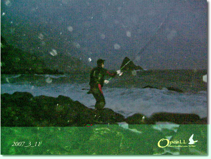 2007_3_11 磯サーフ小河川流れ出しでのボーグ探査 (ボーグ山本)