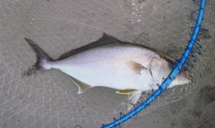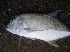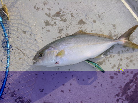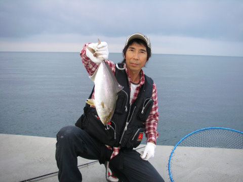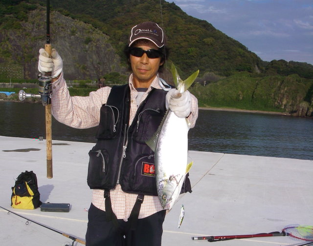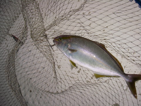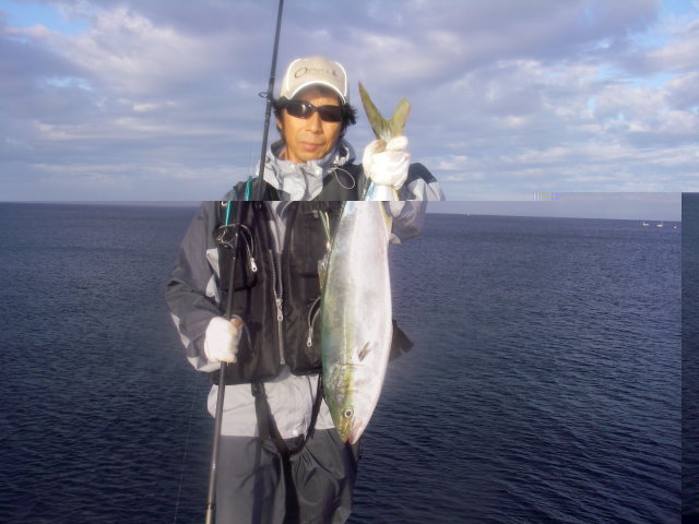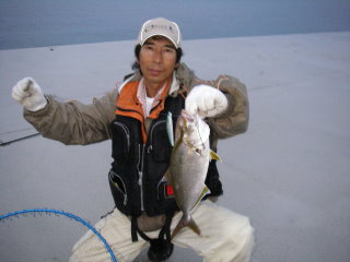 平鱸の気配はなくrinyosiさんにイトヒキアジ、オーナーとボーグ・マン土屋貴さんにイナダが来た