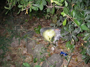 2008年11月17日 北館さんと磯平鱸釣行。山本にいい型の青物らしきヒットがあったが沖の沈み根にスタック。約10分待機し開放を待ったが変化なく止むを得ず切断。SB/Skypassのボディーのみ回収された。
