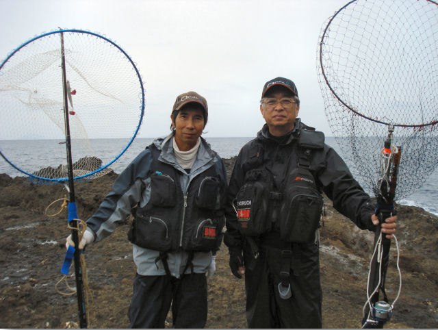 昨日の伊良湖の写真です。同行したすーさん(旧墨攻隊長さん)もファルコンSB/Sky-passIRGスペシャルで74.5cmをヒットしてくれました。当日は12〜3人が西磯に入ってましたが、釣果があったのは5名6本、、そのうち70cmクラスは3本でした。ファルコンはその3本のうちの2本ゲットと言う素晴らしい結果を引き出してくれました。カラーは総てIRGスペシャルだったので、樋口店長にも喜んで貰いました(笑)