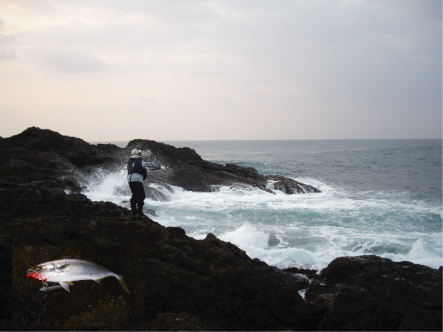 2008,年10月12日(オーナー) 伊豆東海岸 磯イナダ3.0キロ 港湾より難易度は数段上がる。