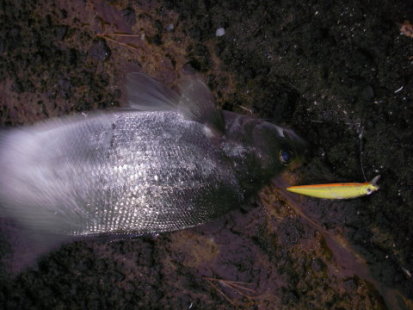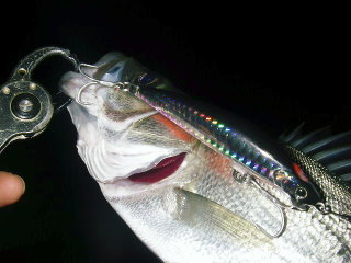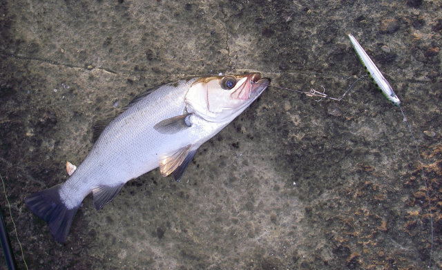 08_11_4 伊豆西海岸 リード・セブンペンシル(42g)による平鱸ランディング (釣者 オーナー)