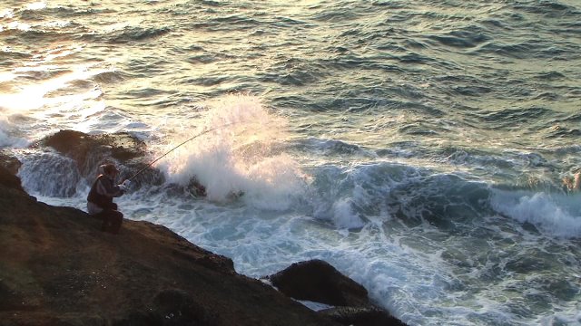 22日伊豆東海岸、磯際に寄れなかった21日に比べれば落ちたうねり。警報は解除されたが油断できない。