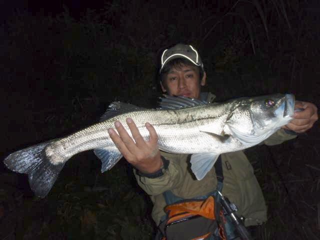 2008_10_18 BFT近藤秀和選手(山形) Lateolabrax japonicus3連続ランディング(55,65,75cm) ファルコン128LB/Iron FCクリアーRHラメ