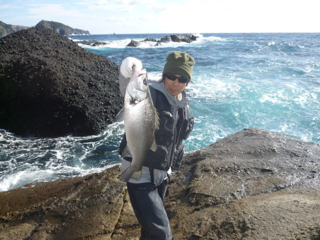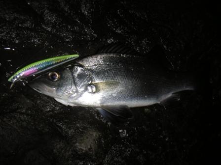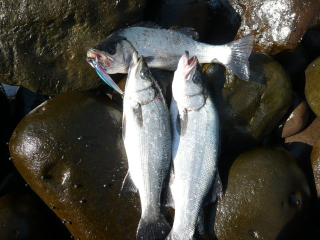 磯マル一本に小さいながらもヒラセイゴ二本とれました^^;ちょっといい型が口切れのようで逃げられました^^;