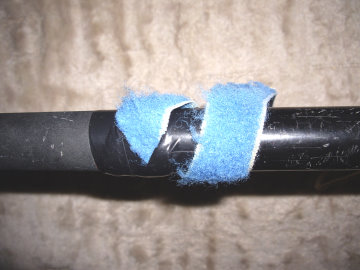 マジックベルトAの一端をビニールテープ+接着剤で柄の上部に固定しておくと便利です。