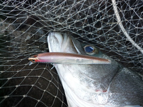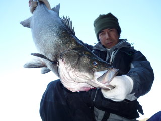 2009_1_5 アッキーさん(山形) タイムラグランカー・ヒット! 丸鱸80cm