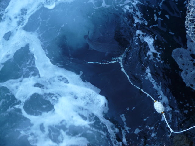 2008年12月30日 難関ネット! オペレーターは北館さん(松崎) 釣者山本。息も合ってきて小型だが魚体確保成功!