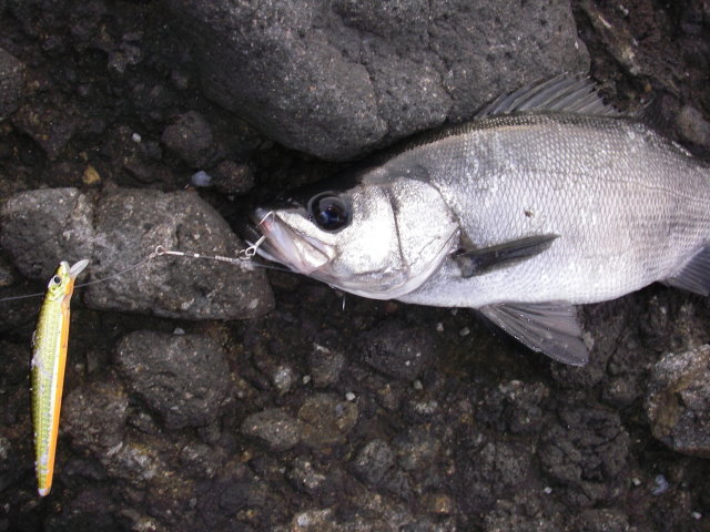 祝!磯サラシからの平鱸、伊豆で初ヒット&ラン!異なるポイントで全3尾確保 2009年1月31日 高橋宏行さん(愛知)