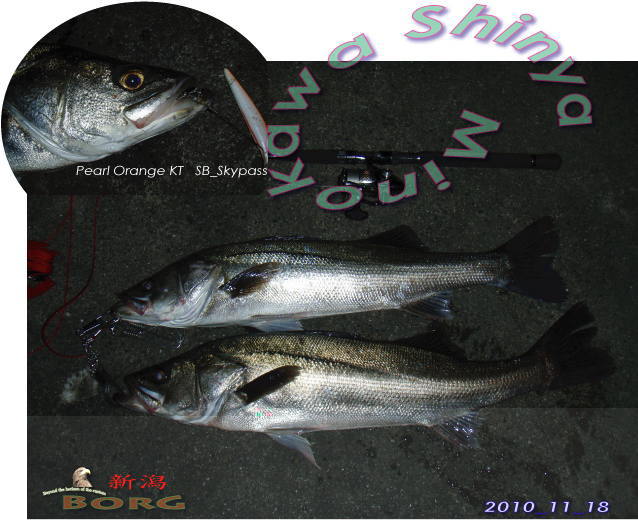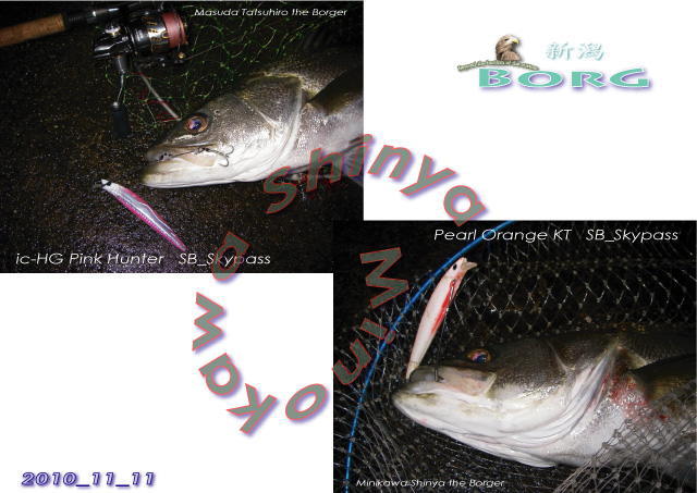 奇しくも連続レイアウトになった下の画像、12月20日の美濃川さんのヒットは前項釣者、加藤さんのオリジナルカラーパールオレンジKT(SB/Sky-pass)によるヒットでした。