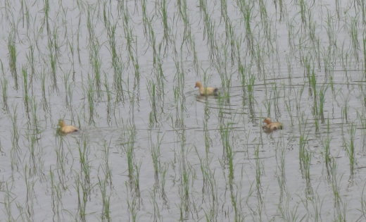 2011年6月20日午後2時50分 静岡県伊豆松崎町桜田の水田カルガモ(?) 働いてます! 撮影カンタ