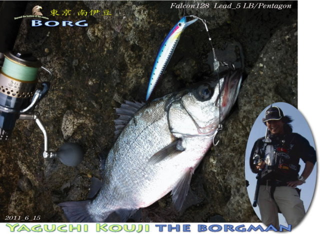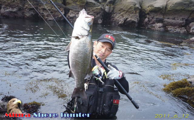 2011年6月15日 谷口耕次さん 東京から磯に棲むヒラにクラッチを掛ける至難の射撃に成功。