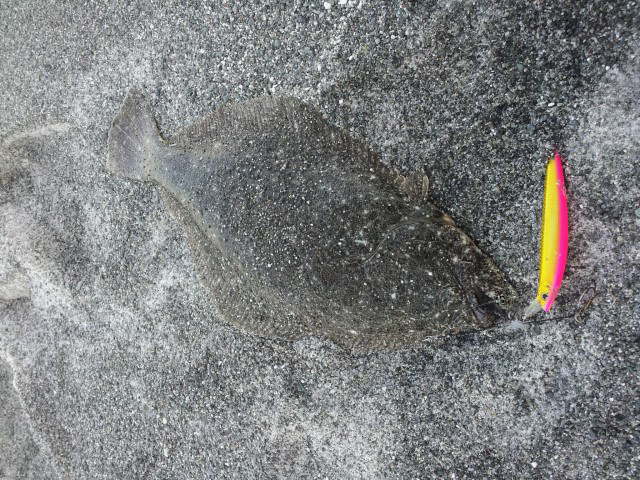 他社の人気ミノーからファルコン128sに変えて一投目、ヒラメが激しくバイトして来ました!