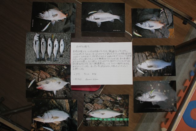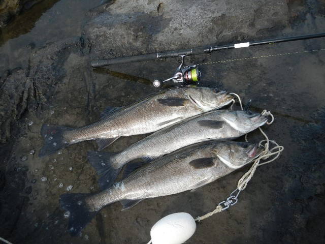 ヒラスズキ 4尾(3.6/3.1/2.6/1.8kg)、黒鯛 3尾 (1.8/1.55/1.1kg)と、写真を撮るほどの魚は出ませんでした。