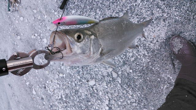 いつの日にか、しかし必ずや良い型のヒラスズキが近藤さんの腕に抱きとめられる事と思います。