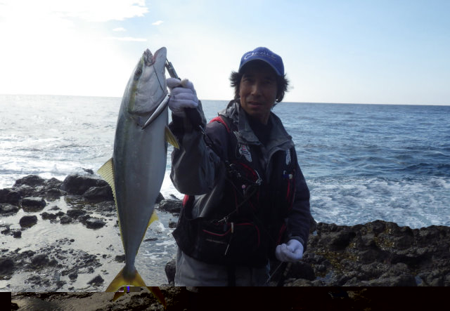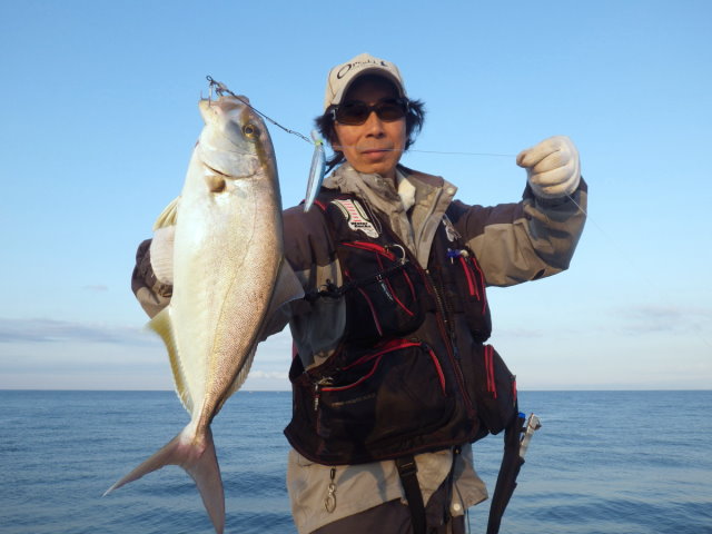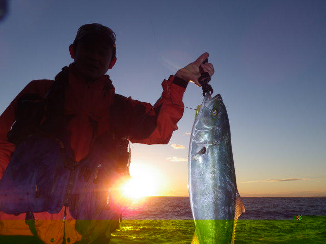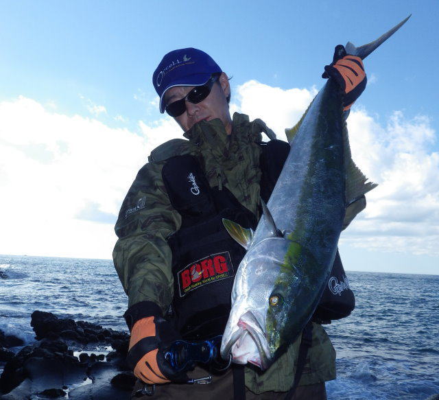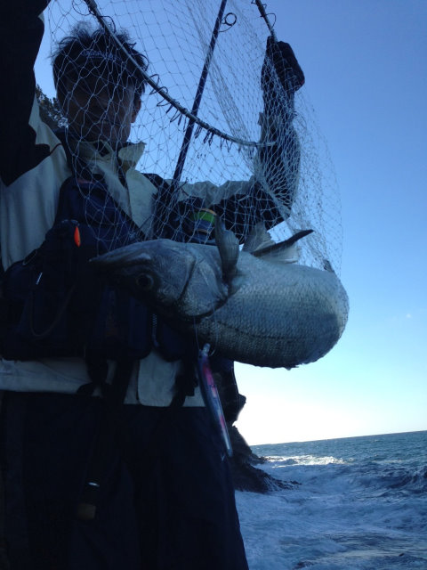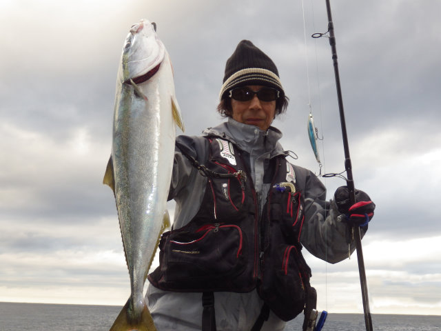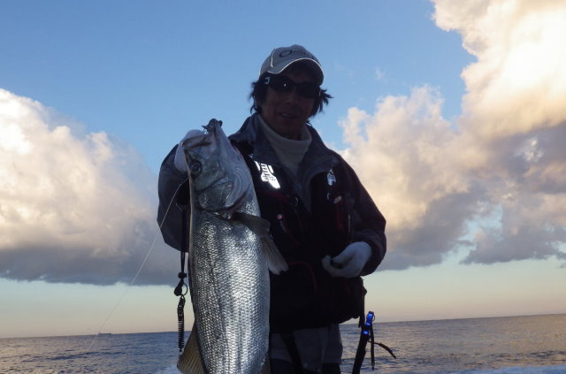 2013年同日 ボーグルアーヒット! イナダ初ヒットの千智さん 撮影 by 鈴木啓亮さん