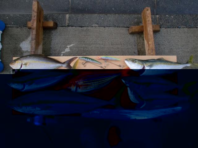 数回、ベイトが逃げるのを見たので、下には大きな魚がいる様子。 次回を期待して、11時撤収。
