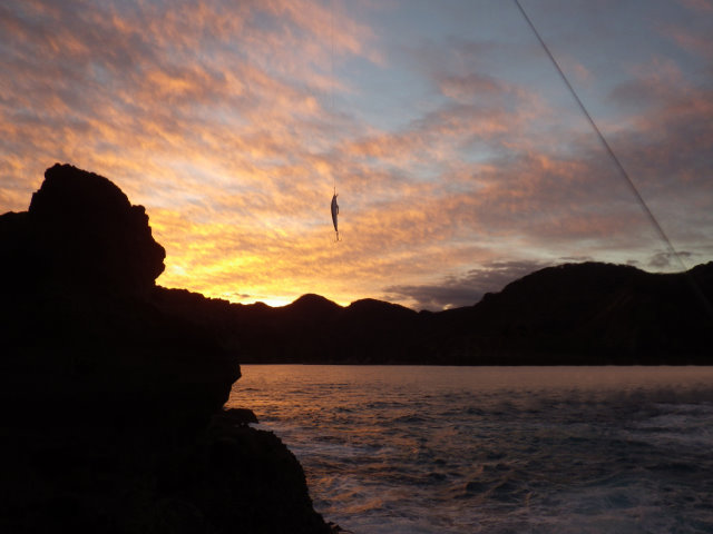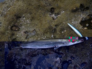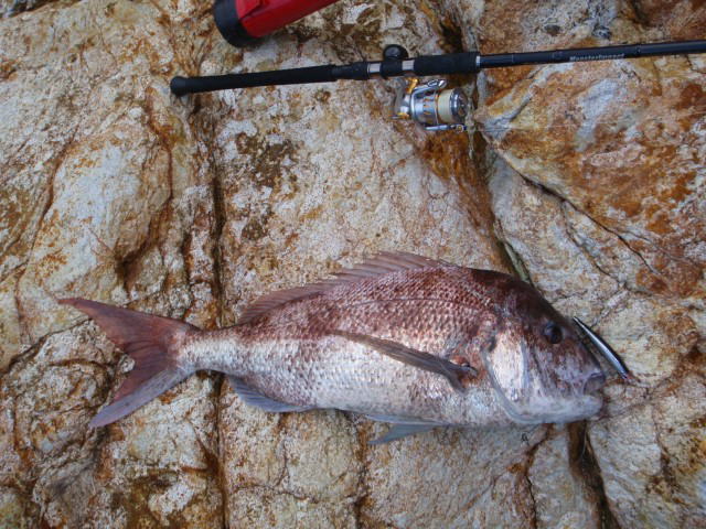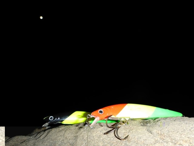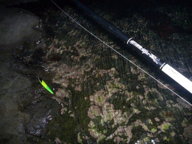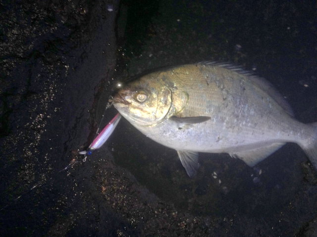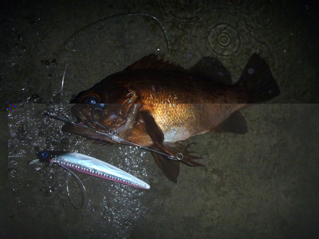 翌日曜は、昨年の真鯛の現場で、午前4時前、釣り開始。サラシは薄い。 釣り開始直後、暗闇で、生命反応。