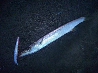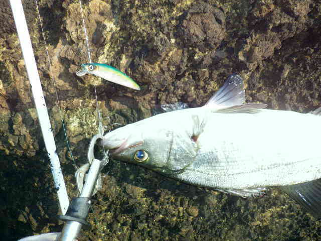 LB/Skypass(アルミ)が、飛魚の口に、ガッチリ、フッキング。 以後、10時まで、全てのポイントを叩き、反応無し。