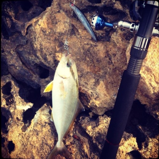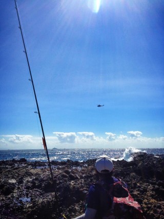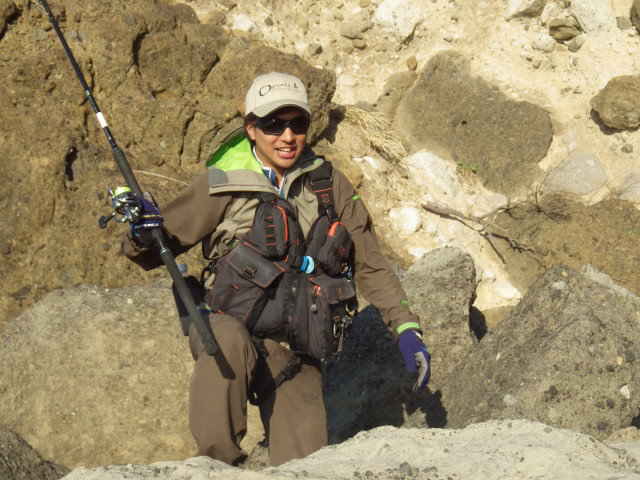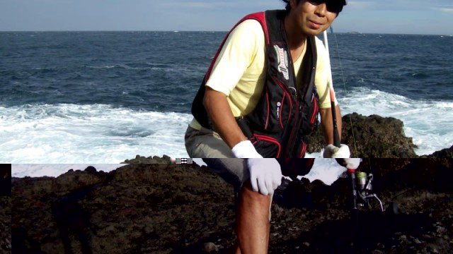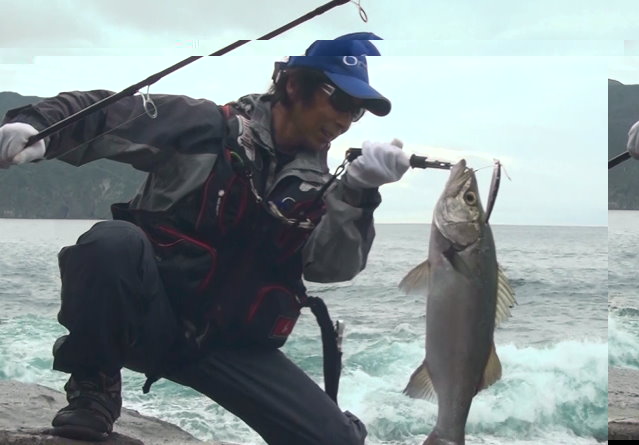 2013年12月29日 長谷川俊さん LB/Sky-passによる磯ヒラランディング。このクラッチフッキングは解けないですね。
