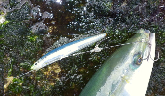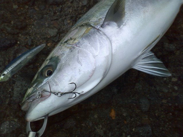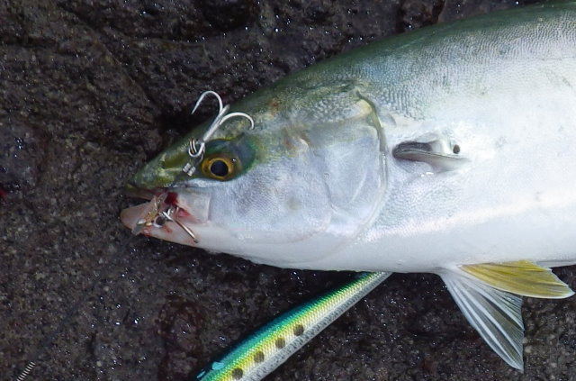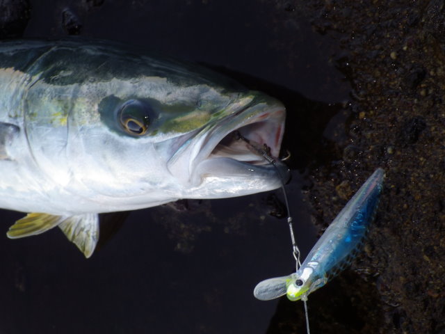 通常ルアーに比べてフックアウトや針伸びが極端に少ないファルコン128を青物に稼動する意味はあるでしょう。